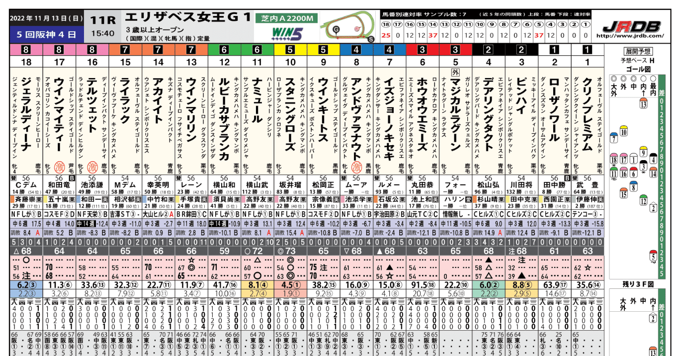 22 hours ago2022年11月13日阪神競馬場でエリザベス女王杯GⅠ芝2200mが行われるデアリングタクトスタニングローズナミュールジェラル.